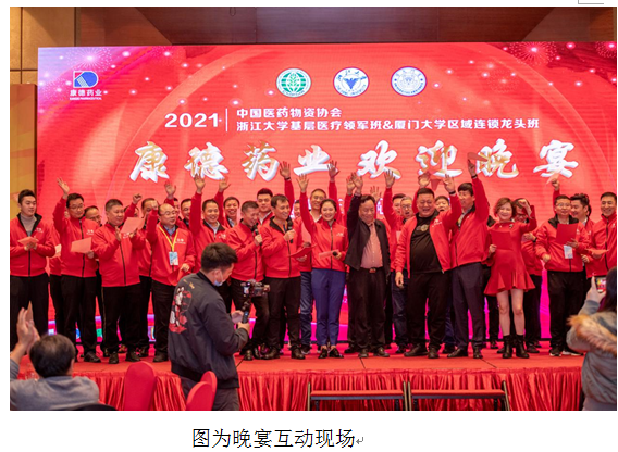 3月22日晚,在中國醫(yī)藥物資協(xié)會(huì)2021大健康產(chǎn)業(yè)(重慶)博覽會(huì)暨第六屆雙品匯開幕前夕,重慶凱賓斯基酒店宴會(huì)大廳高朋滿座、歡聲笑語,來自中國醫(yī)藥物資協(xié)會(huì)浙江大學(xué)基層醫(yī)療領(lǐng)軍班&廈門大學(xué)區(qū)域連鎖龍頭班“的醫(yī)藥企業(yè)家和全國醫(yī)藥連鎖公司的掌舵人齊聚一堂,參加由康德藥業(yè)集團(tuán)舉辦的“相聚重慶 贏享未來”歡迎晚宴。中國醫(yī)藥物資協(xié)會(huì)劉忠良會(huì)長、中國醫(yī)藥物資協(xié)會(huì)智庫首席專家、中國醫(yī)藥報(bào)社原社長方賢業(yè)等協(xié)會(huì)領(lǐng)導(dǎo)蒞臨并致辭,康德藥業(yè)吳寶才董事長現(xiàn)場(chǎng)發(fā)表了激情澎湃的演講,總結(jié)回顧了企業(yè)在研發(fā)創(chuàng)新方面取得的成就,展示了企業(yè)發(fā)展的廣闊前景??档滤帢I(yè)副總經(jīng)理李宇明擔(dān)任晚宴主持,市場(chǎng)總監(jiān)李尤佳向與會(huì)嘉賓匯報(bào)了公司發(fā)展概況、核心產(chǎn)品的品牌優(yōu)勢(shì)和臨床特點(diǎn)。